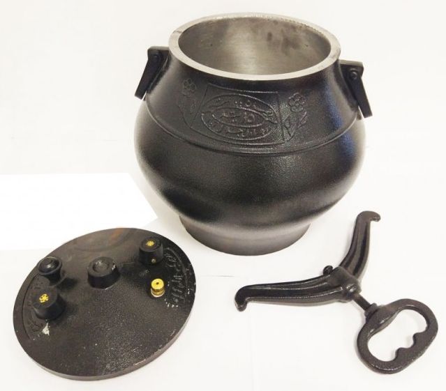 Казан снабжен крышкой, которая оснащена аварийным клапаном, в случае, если давление внутри казана станет критическим, клапан сработает автоматически и вытеснит излишки пара.
