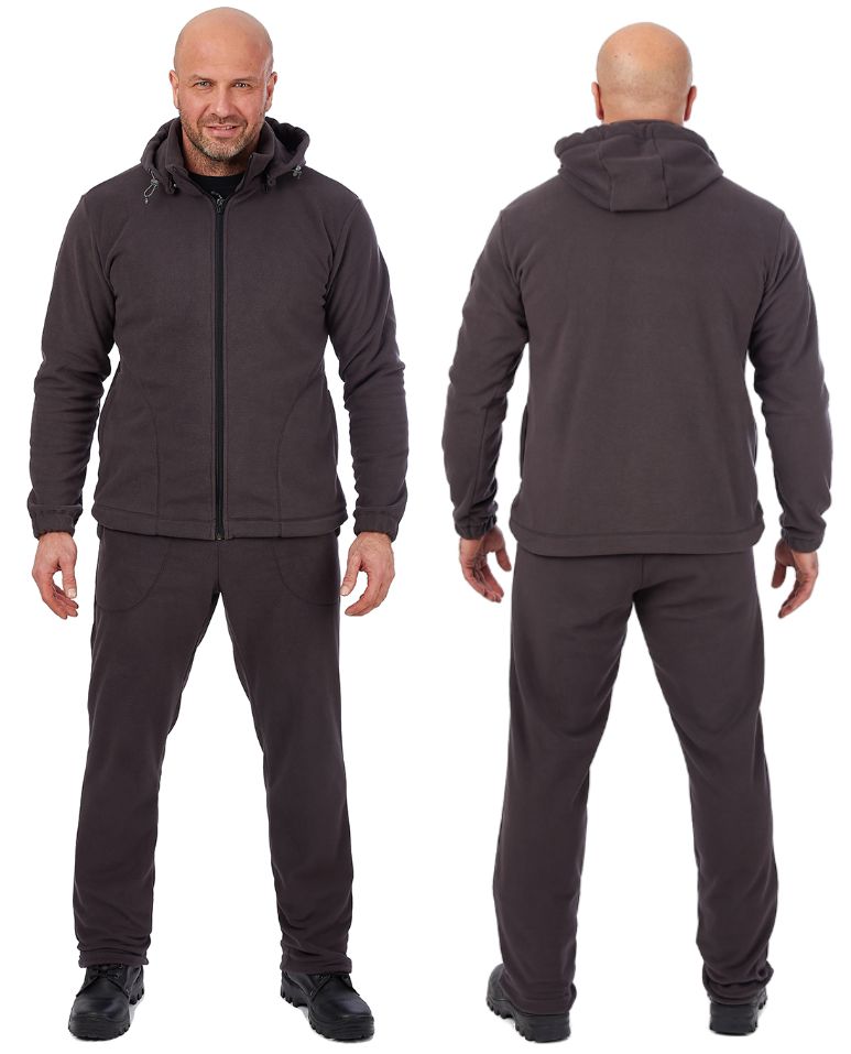 Теплый, мягкий, плотный флис, практически не впитывающий влагу и обладающий повышенной износостойкостью, а также достаточно простой крой – такой костюм подойдет для теплой весны, холодного лета.