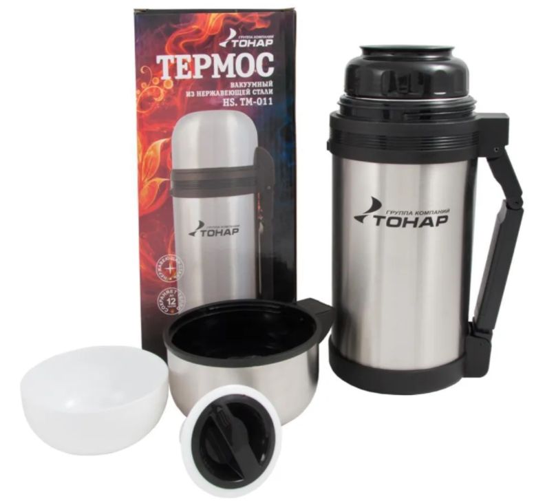 Термос HS.TМ-011 - универсальный термос оснащен двойными стенками с вакуумной изоляцией, которая позволяет сохранять напитки горячими или холодными длительное время. Конструкция пробки позволяет использовать термос как для напитков, так и для первых, и вторых блюд. Изготовлен из высококачественной нержавеющей стали. Вместительная крышка-чашка, дополнительная пластиковая чашка. Удобная ручка и наплечный ремень для переноски. • Объем: 1200 мл. • Материал: пищевая нержавеющая сталь, пластмасса. • Универсальная горловина Сохранение холода: 24 часа Сохранение тепла: 82 С° - 6 часов 76 С° - 9 часов 53 С° - 24 часа